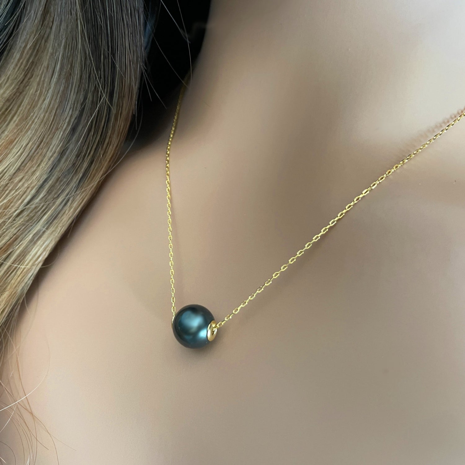 Delicate, feminine and perfect for any age! You'll get lots of compliments wearing this Momi Shell Floating Pearl Necklace. It's a beautiful approx. 10mm shell pearl that glides along a 14K Gold over .925 Sterling Silver Chain. Even better, the chain is adjustable up to 20 inches!
