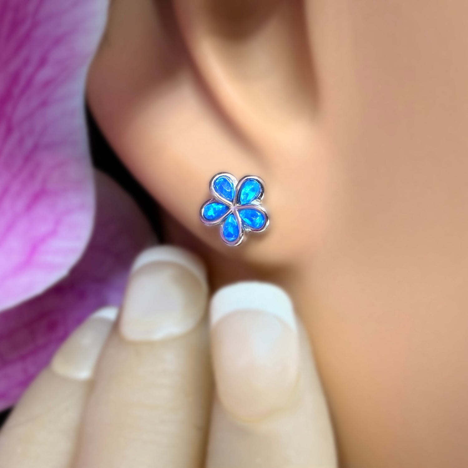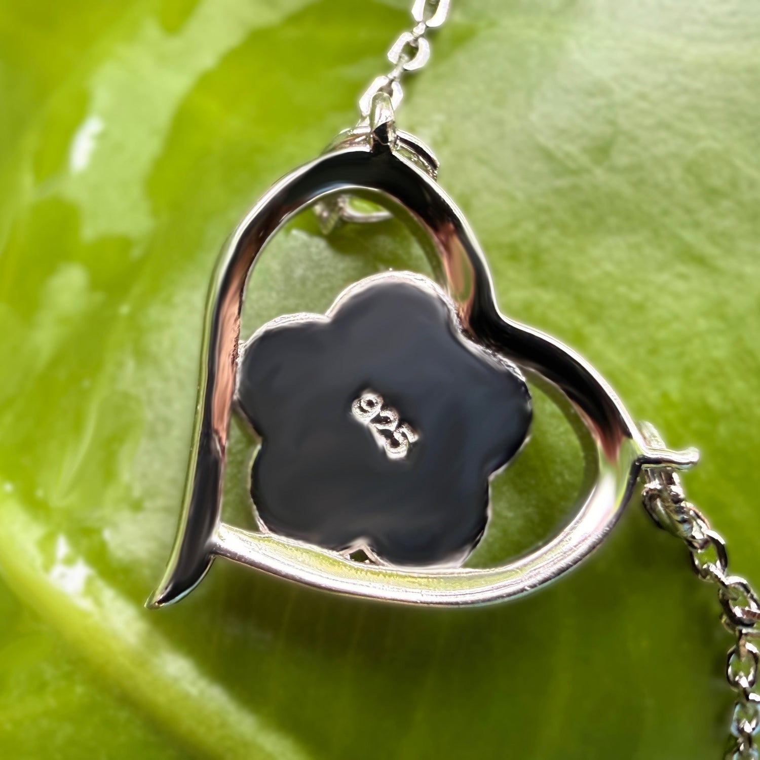 Our beautiful plumeria heart pendant and earrings glow with your choice of blue or white opal. Soft island sparkle that’s perfect for gifting. A sweet, graceful design that brings a touch of Hawaiʻi to any outfit. .925 Sterling silver. The pendant includes an 18” adjustable chain.